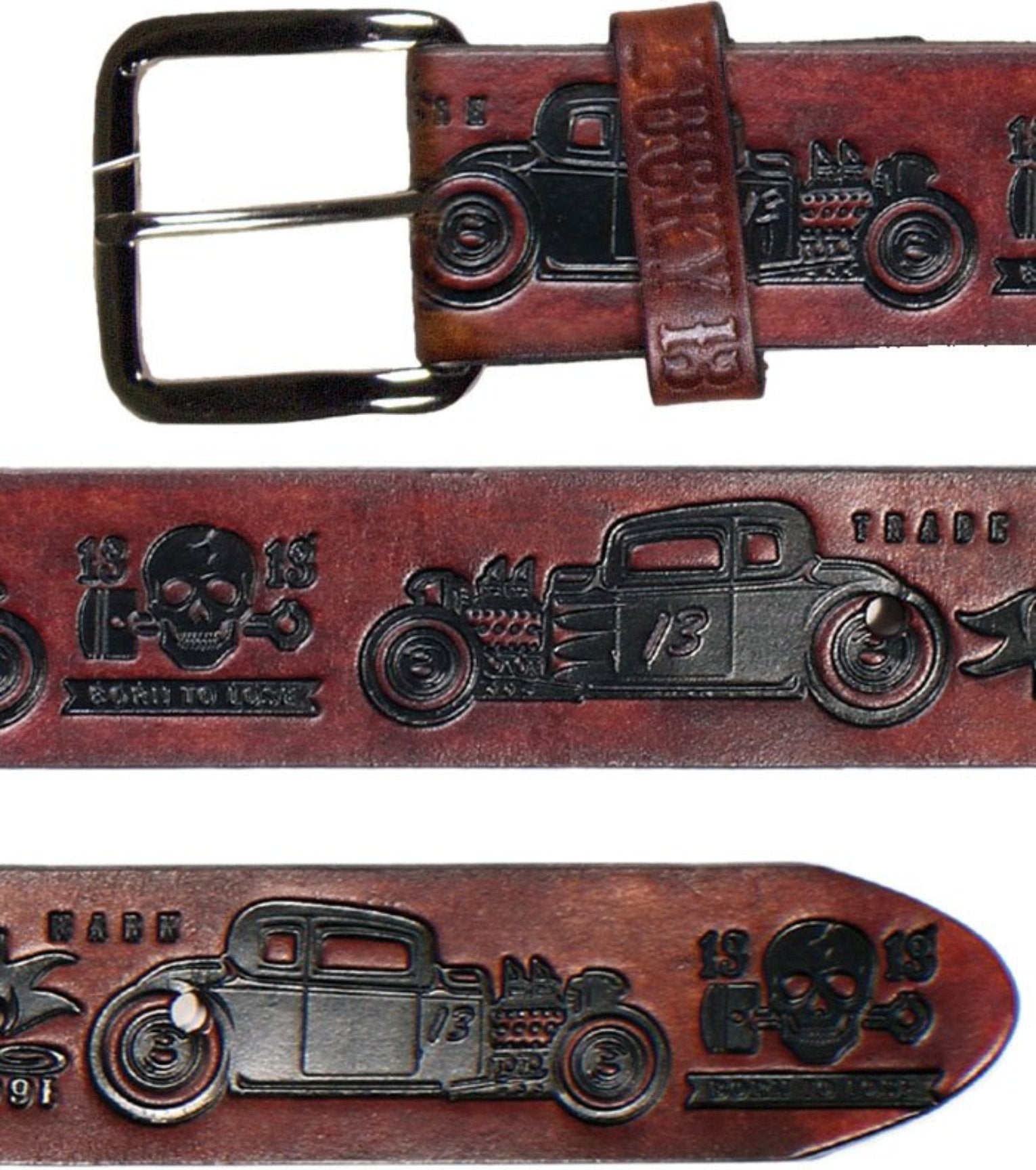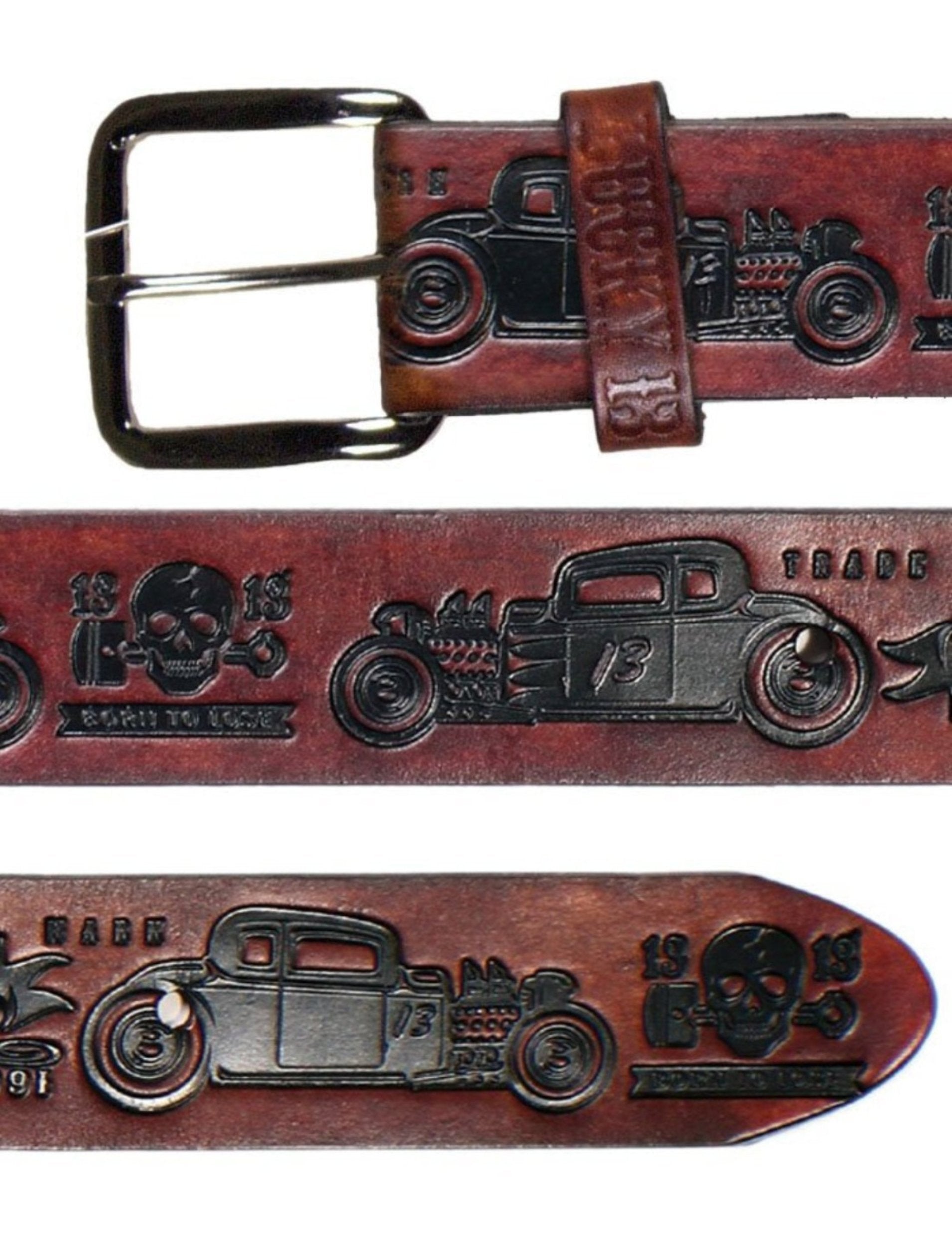 The COUPE 13 Embossed Leather Belt - ANTIQUED BROWN