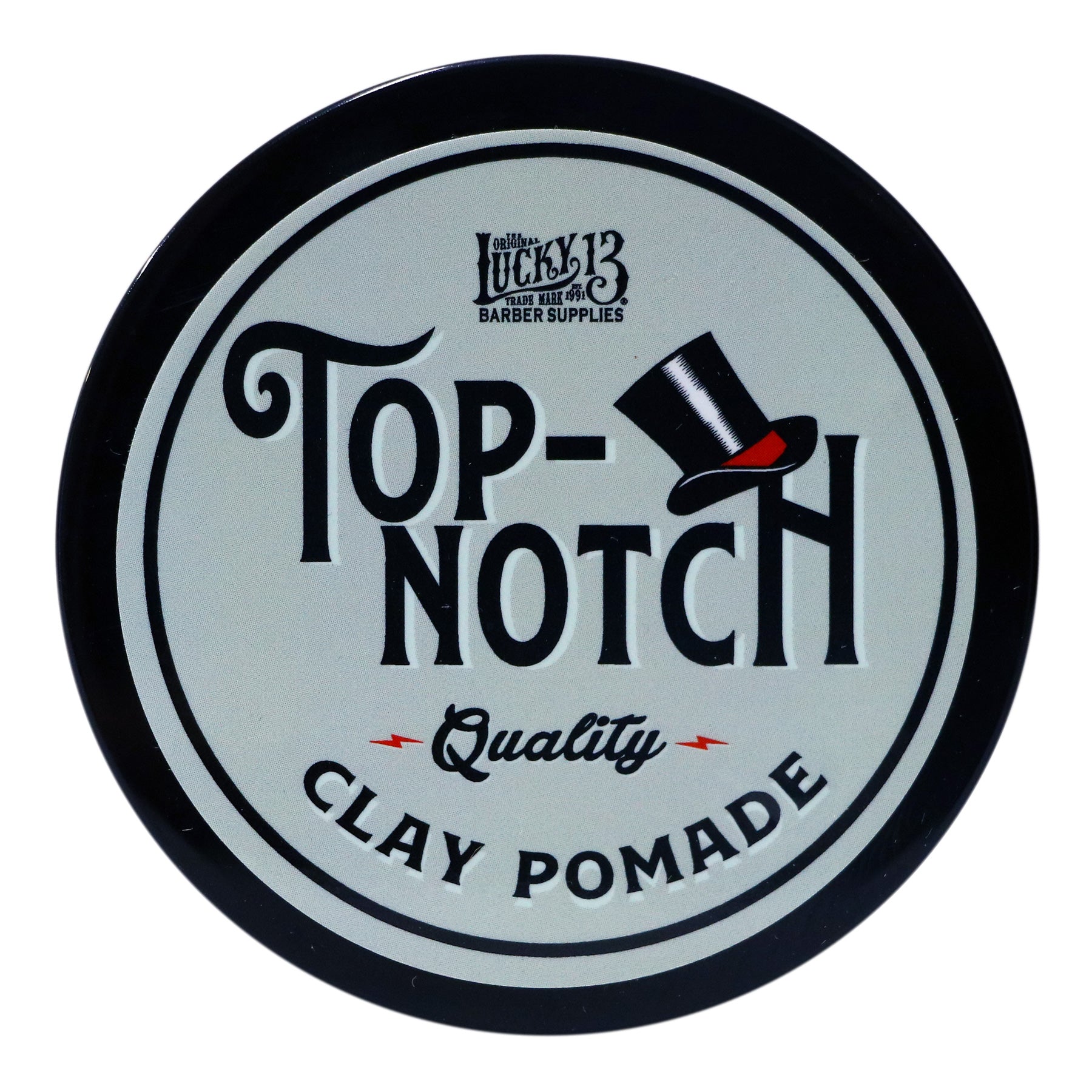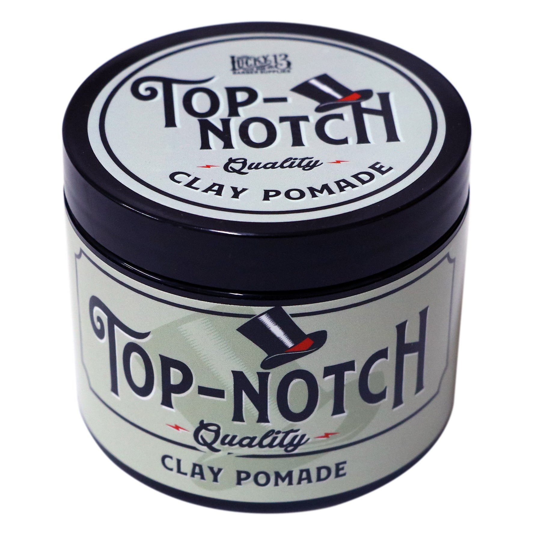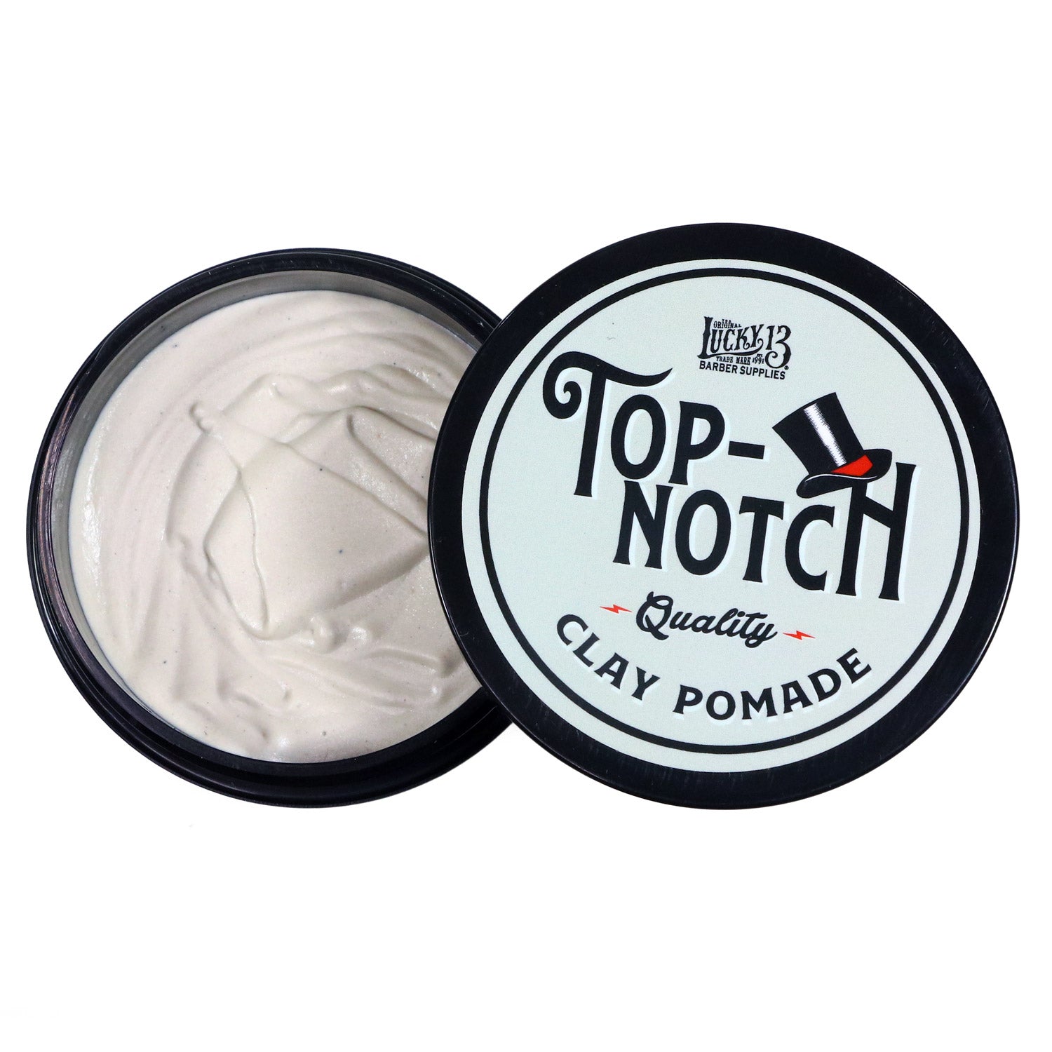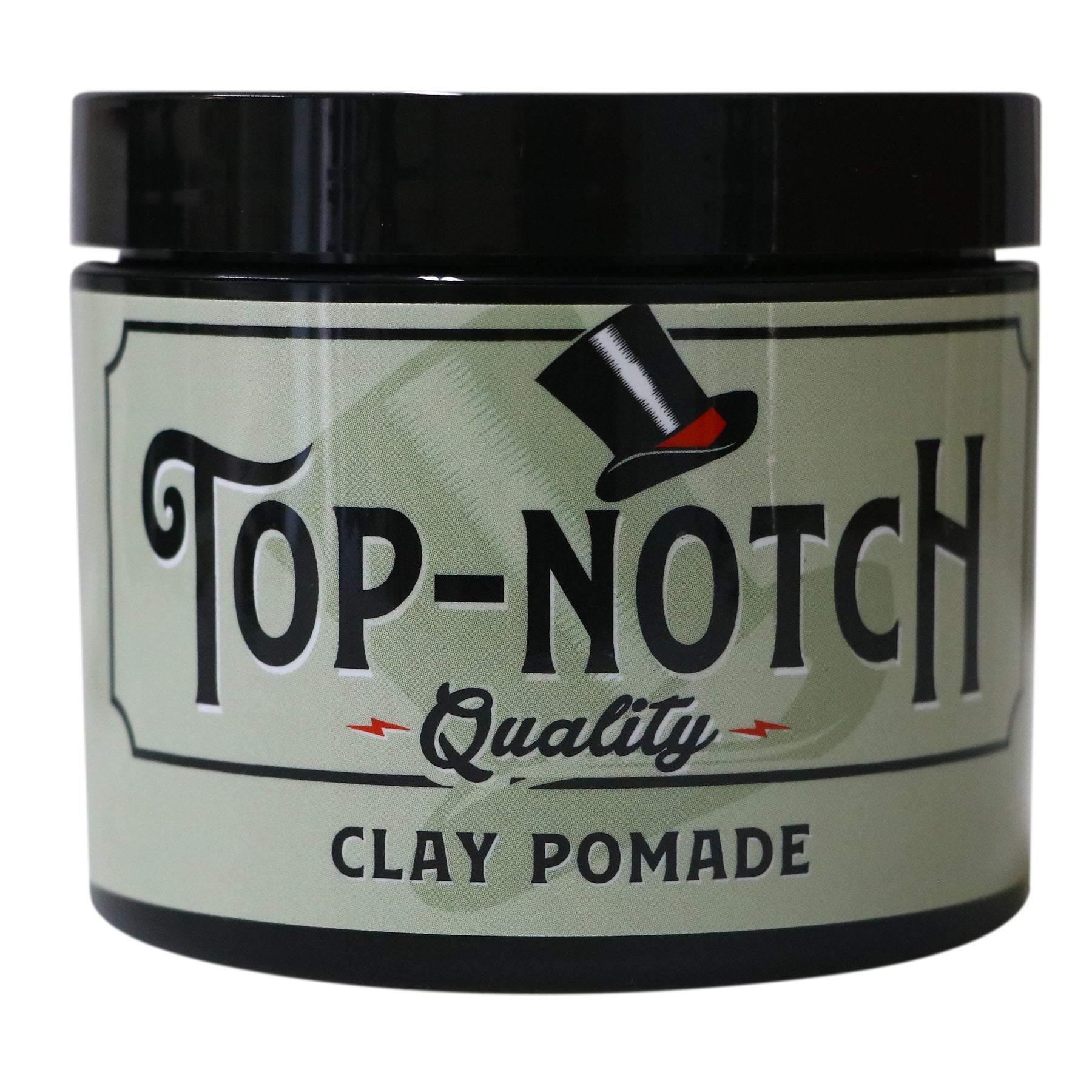 TOP NOTCH pomade is a clay-based pomade with a strong hold and a matte finish. When you need some extra hold without shine, that keeps your hair in place without looking wet. This works well for thin hair and can assist with those "Fly-away" hairs as well. Just wet your hands and smooth them down instantly.