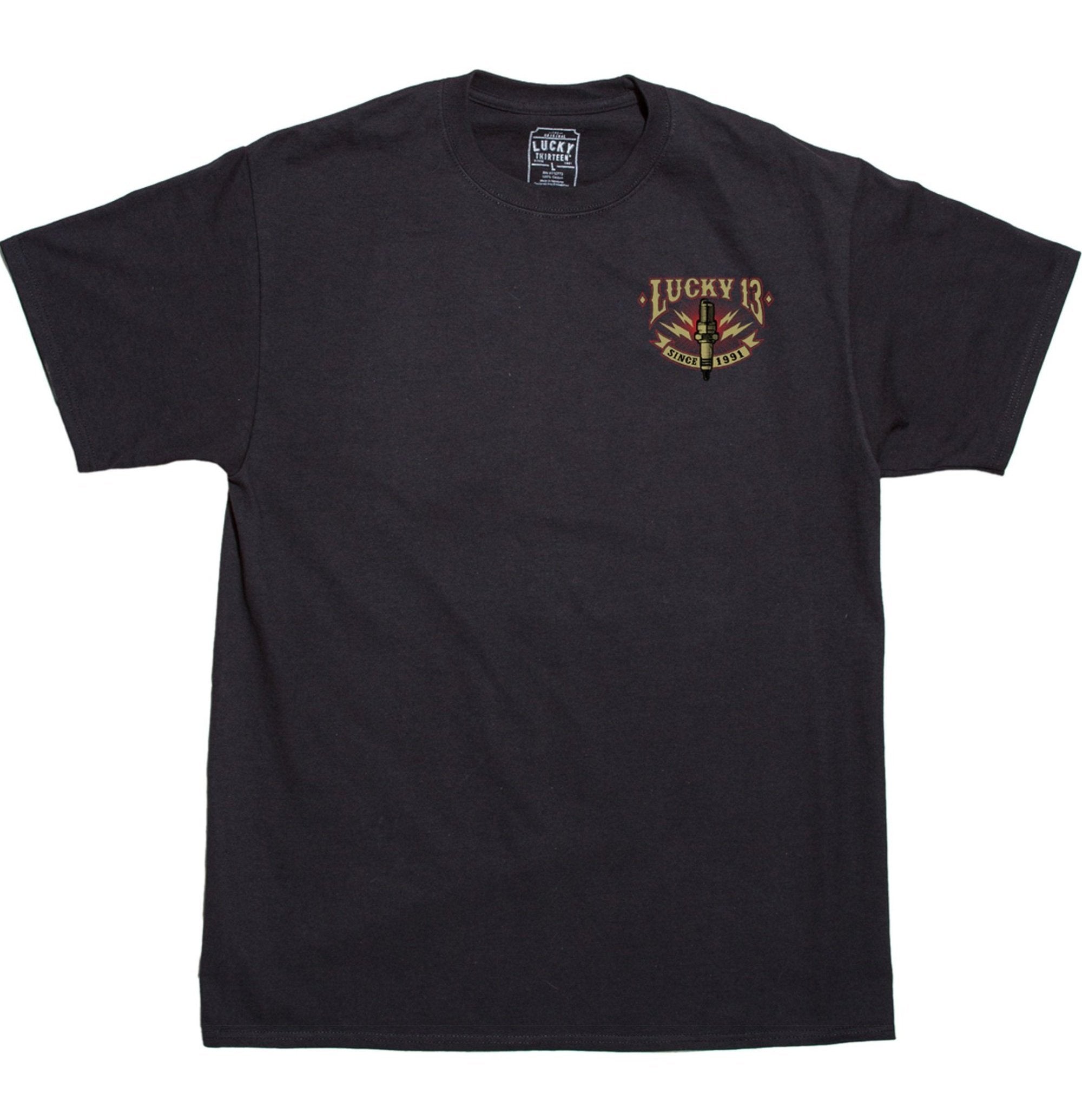 The AMPED tee is a 6.1 ounce 100% soft spun cotton heavyweight short sleeve men's tee, with 1X1 rib-knit collar, should to shoulder taping, cover-seamed neck, and double-needle sewing on sleeves. This baby comes with a full back print of our classic "Amped" graphic, and a front left chest print.