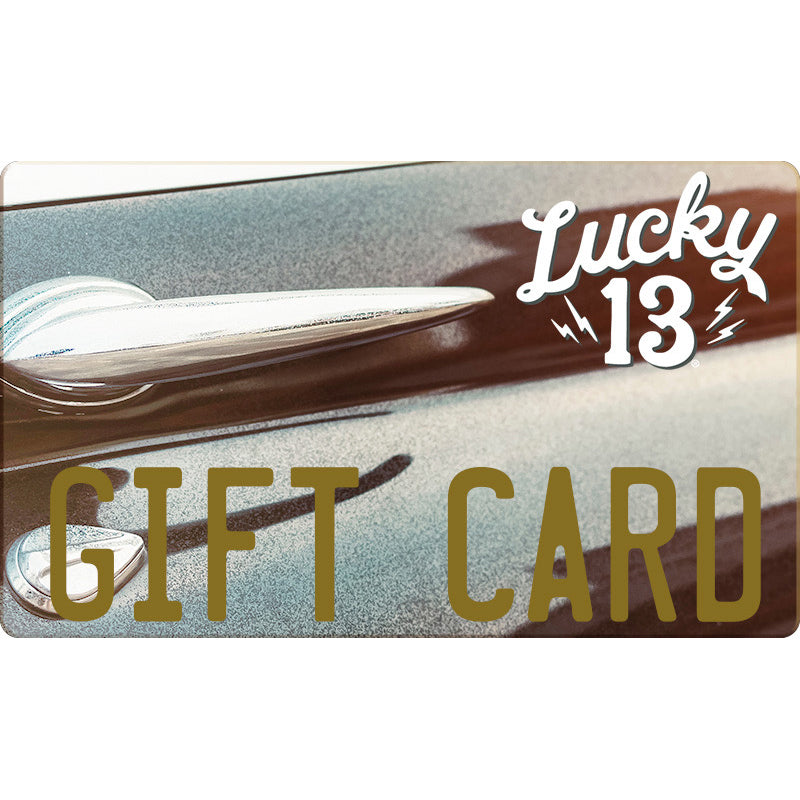 Shopping for someone else but not sure what to give them? Give them the gift of choice with a Lucky13 Gift Card. Choose your amount by clicking on the box below TITLE.