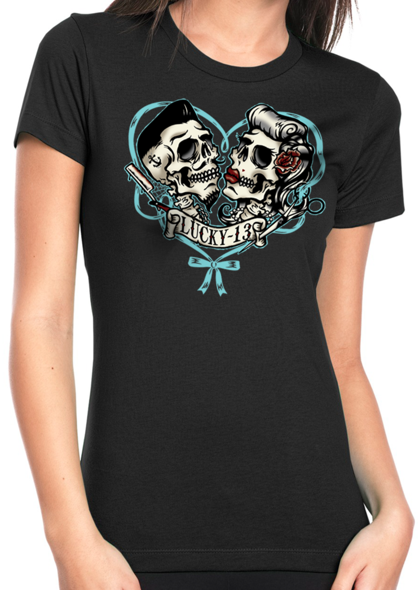 THAT'S A MUERTE crew neck tee is a casual style short-sleeved women's tee with the "That's A Muerte" graphic. True Love Never Dies!!